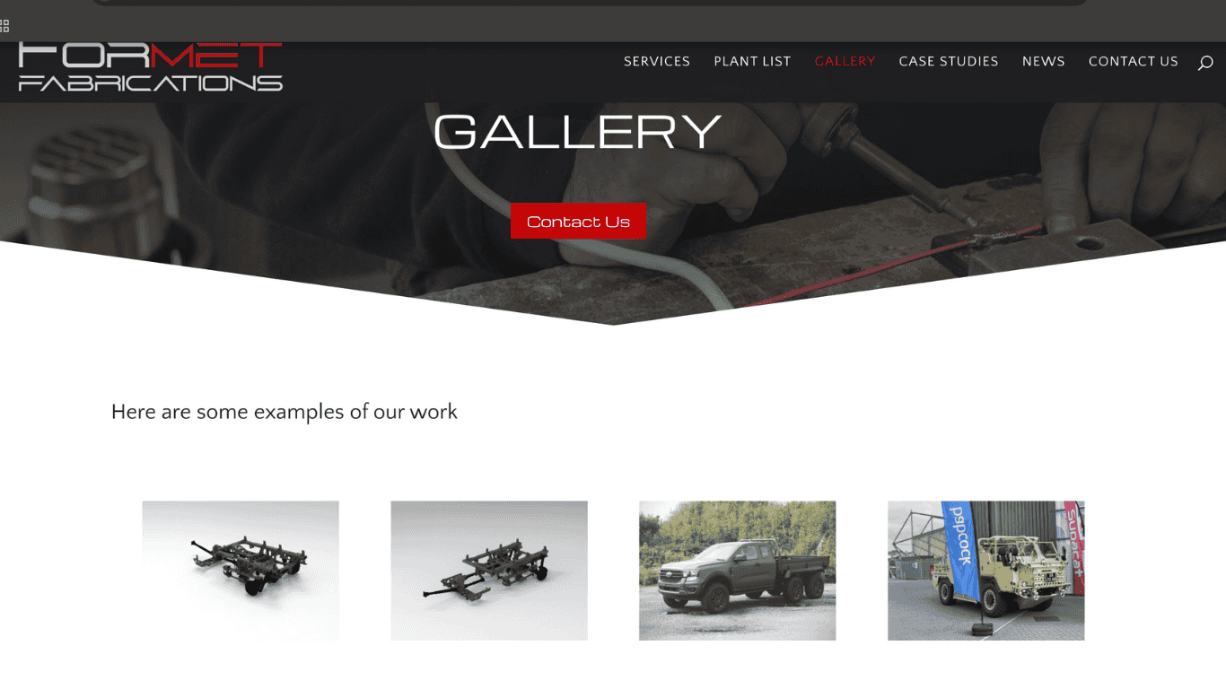 To further highlight their capabilities, Formet Fabrications wanted to include a detailed plant list on the website. This section outlines the industry-specific equipment and tooling they use, reinforcing their technical expertise. In addition to informing potential clients, the plant list also supports SEO efforts by incorporating relevant keywords related to their machinery and services.